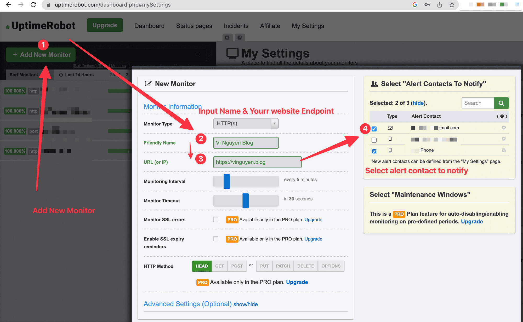 - URL: your endpoint/ip that you what to monitor: example https://vinguyen.blog/