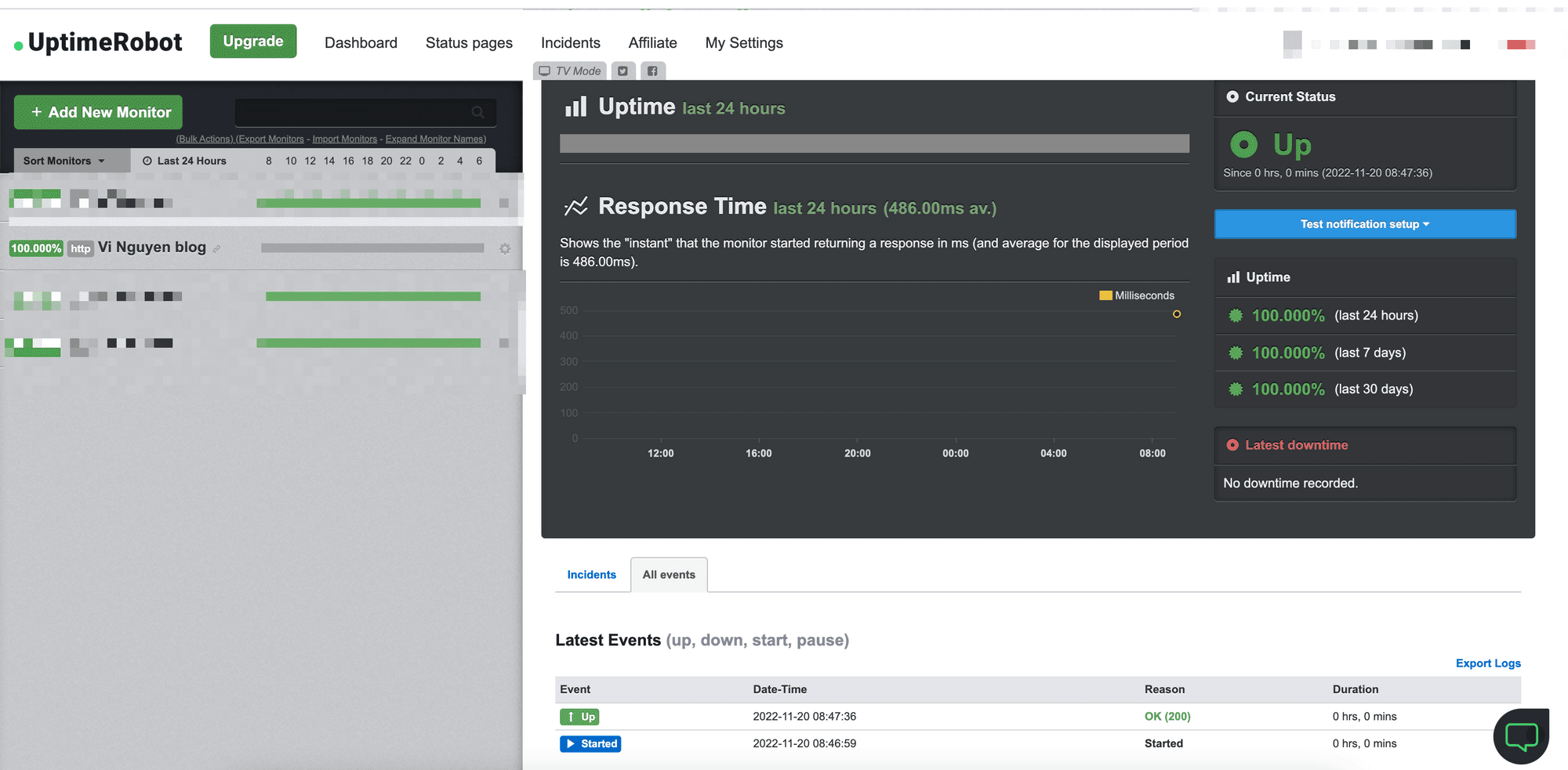 Step 3: Waiting for Uptime Robot checking & make sure that the blog is up