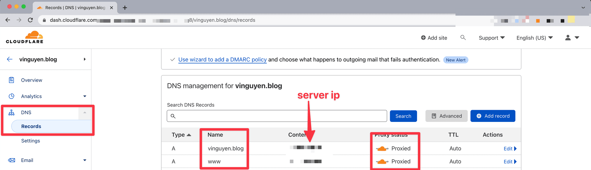 The simple solution is use the Cloudflare service with proxied mode, mapping your domain with the server ip and it done.