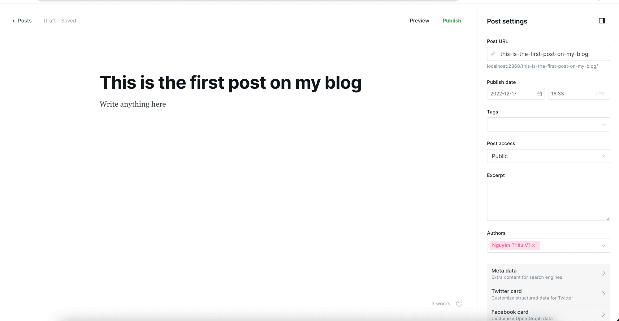In this post, we'll setup a MVP Blog using Ghost and Docker on Linux environment, full setup script could be founded at: https://github.com/ngtrieuvi92/mvp-ghost-blog-docker